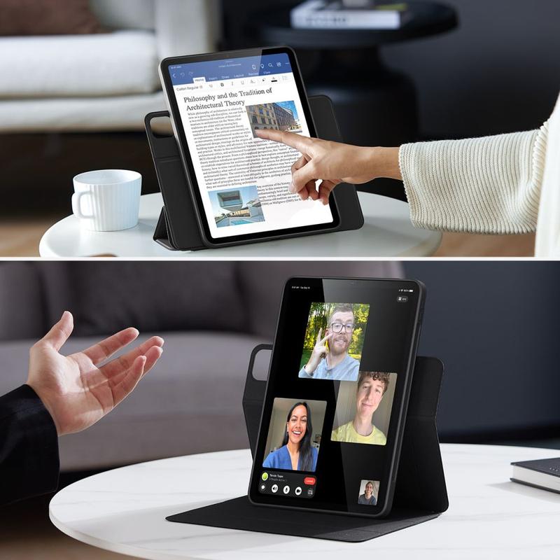 The ESR Rebound Hybrid Tri-Fold Folio Case provides versatility and comfort of use with its innovative magnetic backs that can be transformed into a stable stand or completely removed. It also features an automatic sleep and wake-up function, helping to save your device's battery.