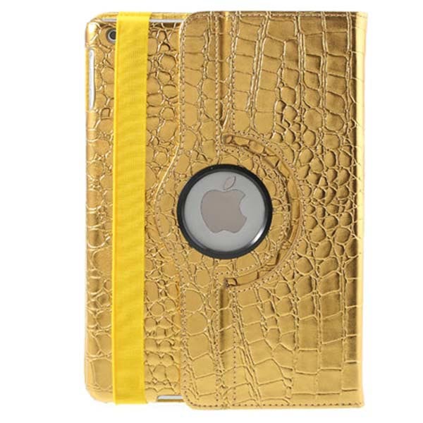iPad Air Rotirajuća Pametna Kožna maska - Krokodil - Zlatna