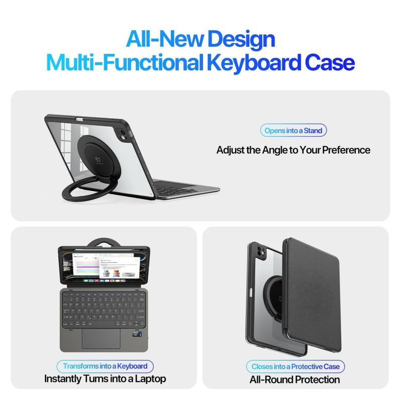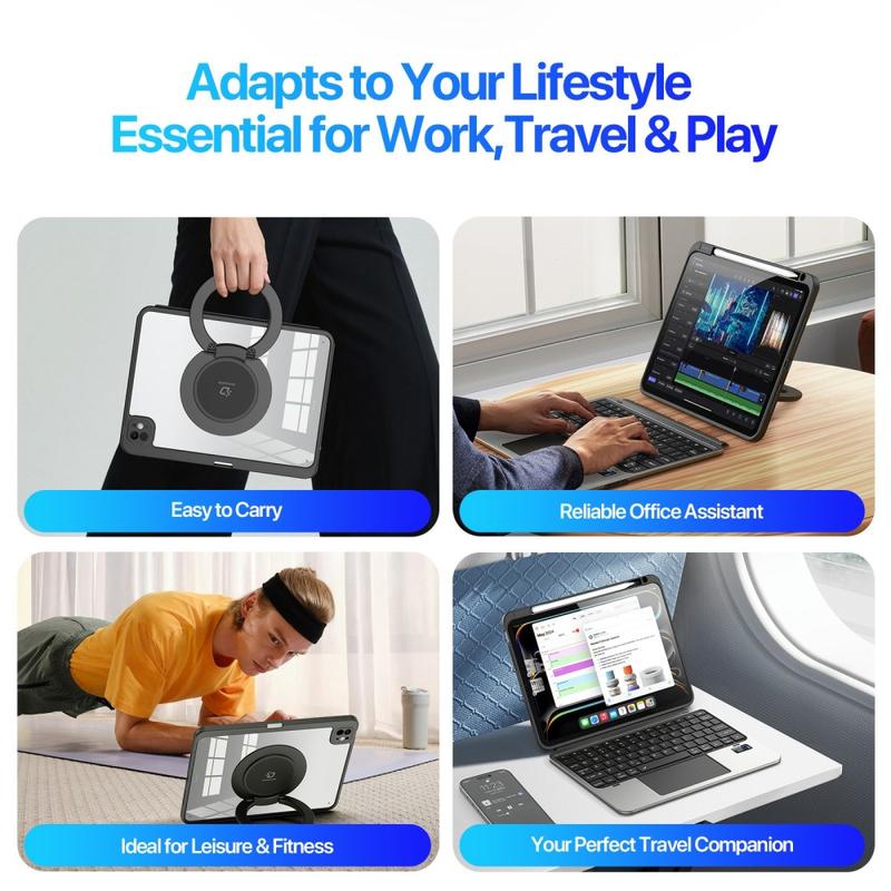 Enjoy unlimited positioning with the 360° rotating stand and 180° angle adjustment, supporting both landscape and portrait orientations. Perfect for typing, video calls, drawing, or binge-watching your favorite shows.