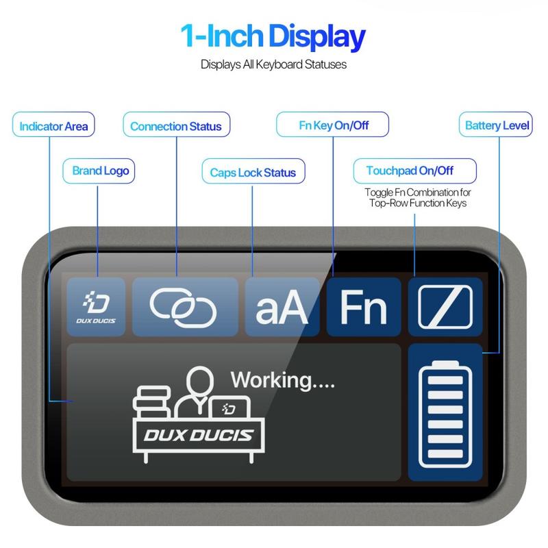 A 1-inch LED screen conveniently displays battery level, Bluetooth connection, and status indicators at a glance. The integrated multi-touch trackpad supports gesture controls, boosting productivity for work and study.