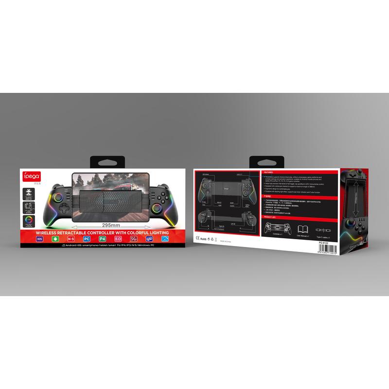 iPega PG-9122 Wireless Stretching RGB Gamepad - Hall Effect Sticks, 6-Axis Motion, Turbo/Macro, For Android/iOS (MFi)/PS3/PS4/Switch/PC
