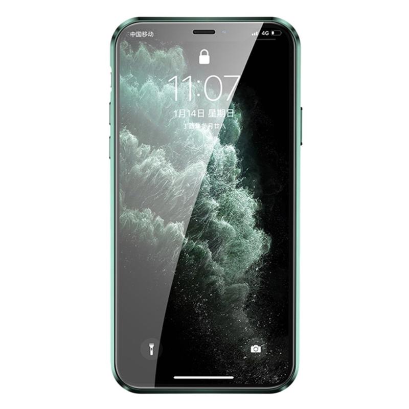 • Muti-Color Anti-Scratch Magnetic Installation Metal Frame + Tempered Glass Full Covering Phone Cover for iPhone 11 6.1 inch