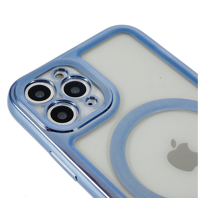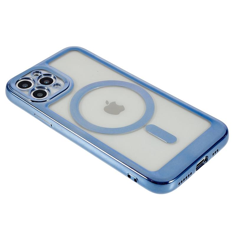Enhance your iPhone 11 Pro Max with this electroplating magnetic TPU phone case, designed to preserve the device’s sleek aesthetic while providing robust everyday protection. Its crystal-clear design showcases your phone’s original style, complemented by a distinctive metallic edging for a polished finish. With support for magnetic wireless charging and dedicated camera protection, this case excels in both functionality and modern appeal.