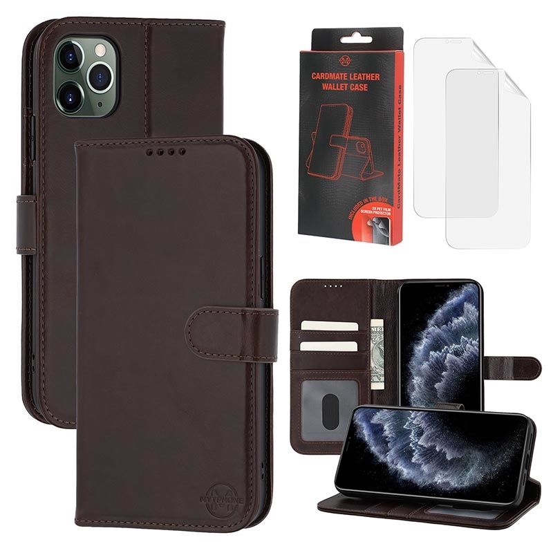 MyTPhone CardMate Premium Leather Wallet Case for iPhone 11 Pro Max - Stand Feature, Card Holder, Wireless Charging Support, 2x Screen Protector