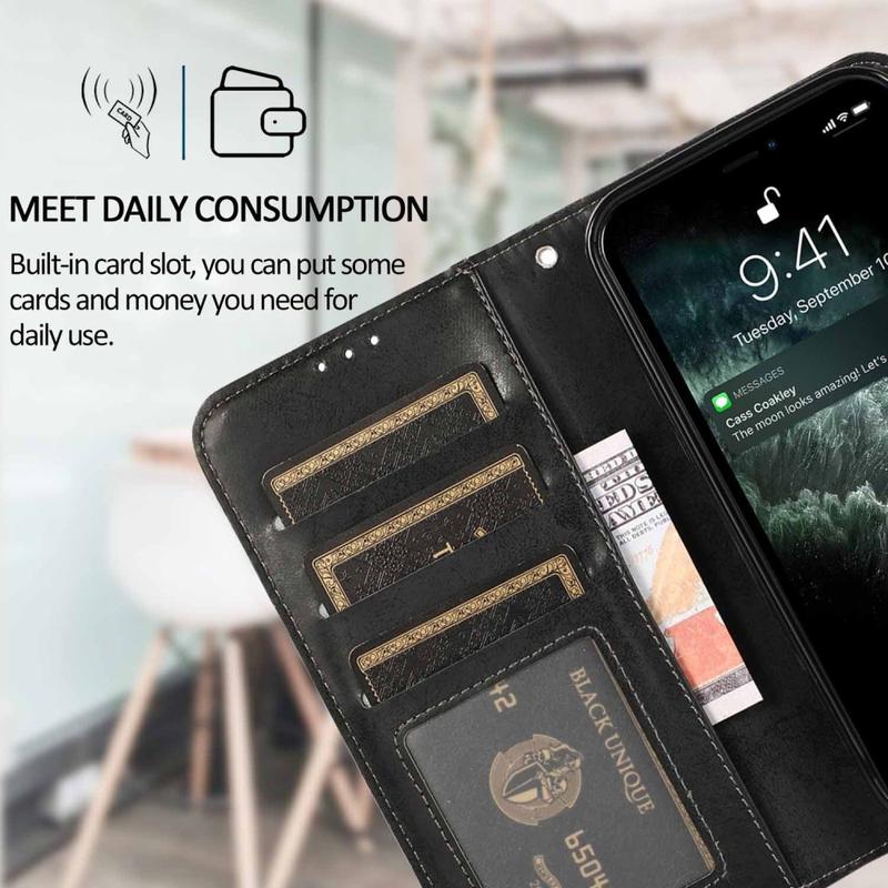 Made from retro matte polyurethane with a soft TPU inner shell, this case offers a comfortable feel and reliable protection against daily scratches, bumps, and wear. The built-in wallet includes 3 card slots and a cash compartment, making it easy to carry your essentials in one place. The foldable design also works as a stand, giving you a more comfortable hands-free viewing angle for videos, browsing, or calls.