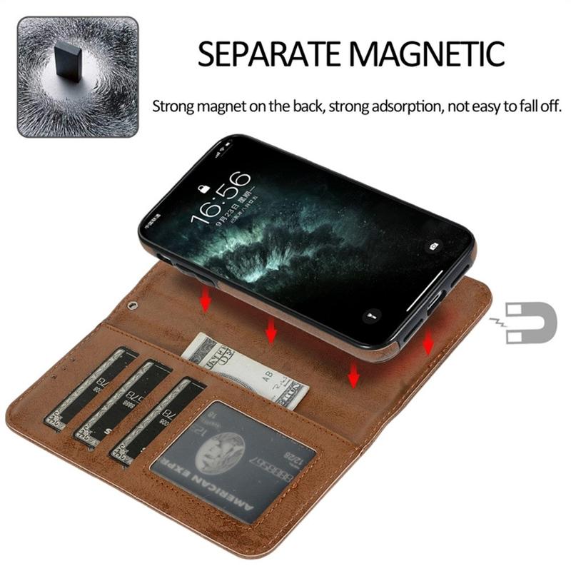 Vintage 2-in-1 Wallet Case with Removable Magnetic Cover for iPhone 11