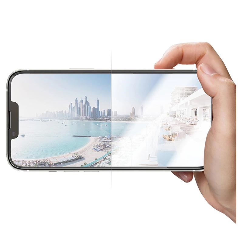 Recite zbogom škiljenju u ekran svog telefona u svetlim spoljašnjim okruženjima - PanzerGlass Ultra-Wide Fit antirefleksno kaljeno staklo za ekran za iPhone 13, iPhone 13 Pro, iPhone 14 obezbeđuje kristalno jasnu vidljivost. Ovaj zaštitnik ekrana je dizajniran da izdrži padove, udarce i ogrebotine i ima poseban premaz koji je otporan na mrlje i otiske prstiju i ima antibakterijska svojstva.