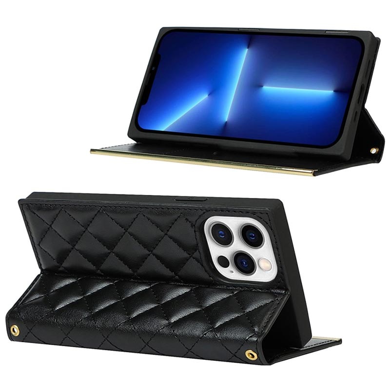 Wallet case and a handbag in one! Thanks to a fancy strap, we represent a particular stylish wallet case for your iPhone 13 Pro that you can carry as a handbag. This case comes with a mirror inside that every lady can use for makeup. Further, it protects your iPhone 13 Pro against daily wear and tear, scratches, marks, and scrapes. Your iPhone 13 Pro will have a fashionable but durable cover.