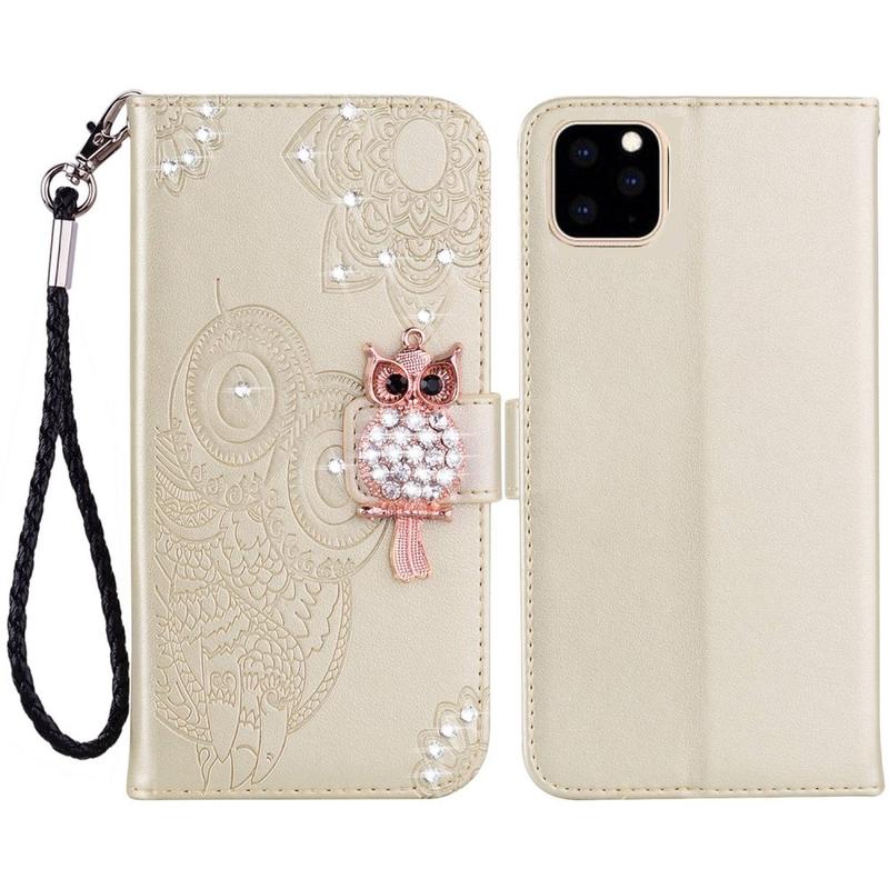 Owl Rhinestone Wallet Case for iPhone 14