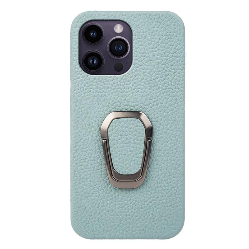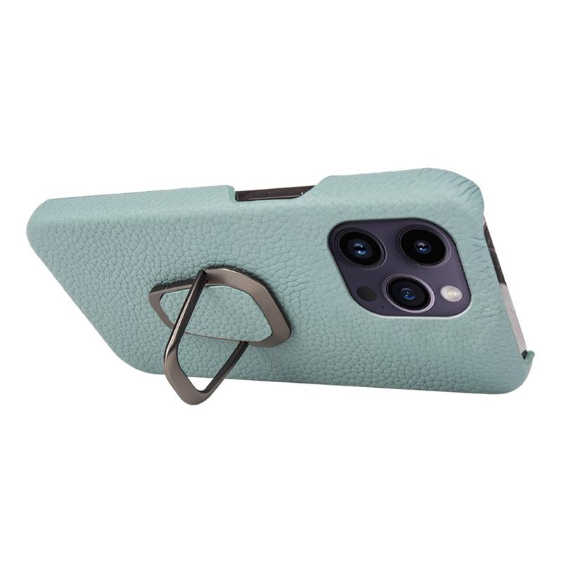 For iPhone 14 Pro Max Genuine Leather + Hard PC Protective Shell Litchi Texture Ring Kickstand Anti-Drop Phone Cover