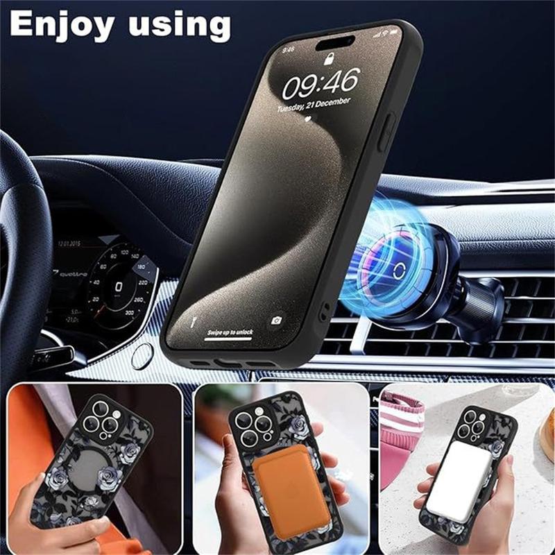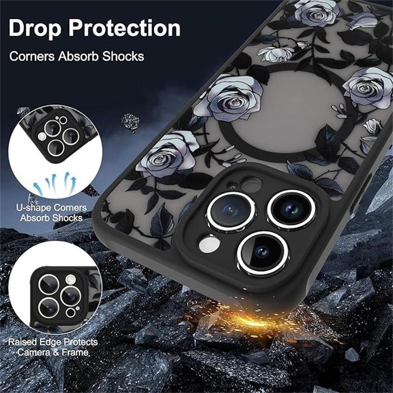 The Rose Flower MagSafe Case for iPhone 14 Pro offers a perfect fusion of vintage charm and modern innovation. With its durable hybrid construction, anti-fingerprint finish, and full MagSafe compatibility, it protects your phone while keeping it stylish, slim, and functional.
