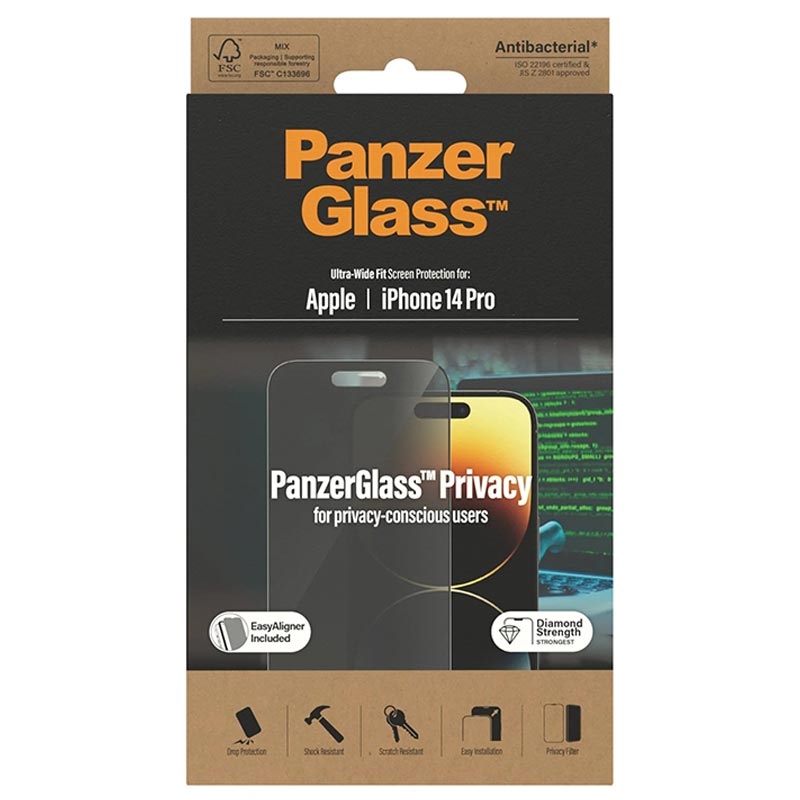 PanzerGlass Ultra-Wide Fit Privacy EasyAligner AntiBacterial za iPhone 14 Pro