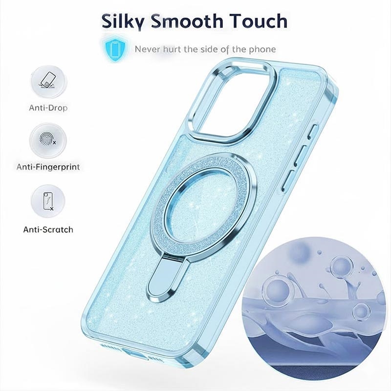 Bring style and protection together with the iPhone 15 glitter case, combining elegant sparkle with reliable everyday durability. Made from high-quality materials and equipped with a built-in metal ring kickstand, this case keeps your phone secure, functional, and fashionable all day long.