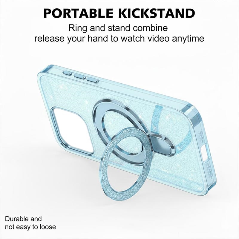 - Glitter Design - Features a sparkling glitter finish on both the case and ring kickstand, giving your phone a unique, eye-catching look.
