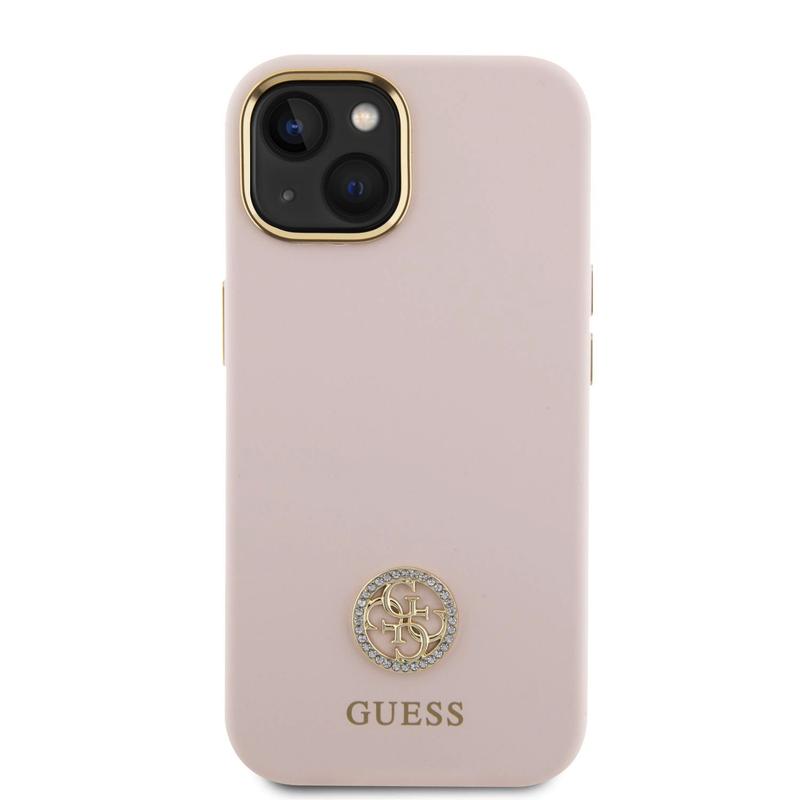 Guess 4G Strass Metal Logo Liquid Silicone Case for iPhone 15