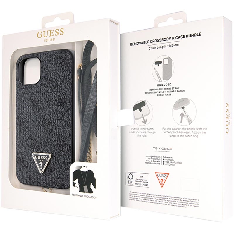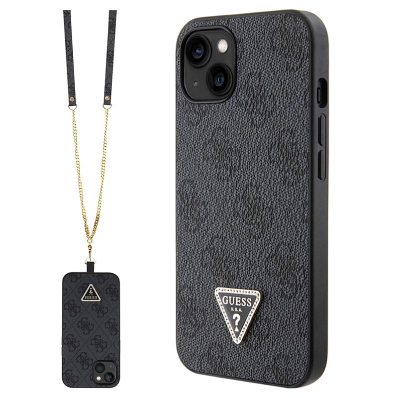 Guess 4G Strass Triangle Metal Logo Maska sa Crossbody Kaišem za iPhone 15