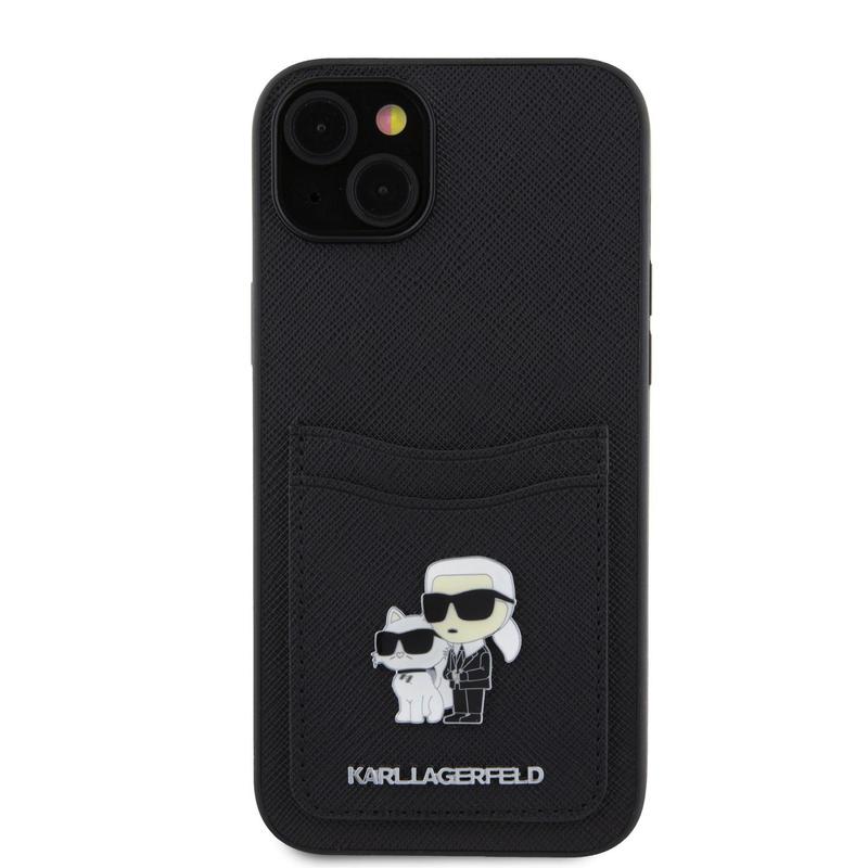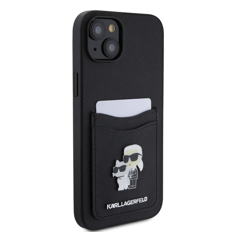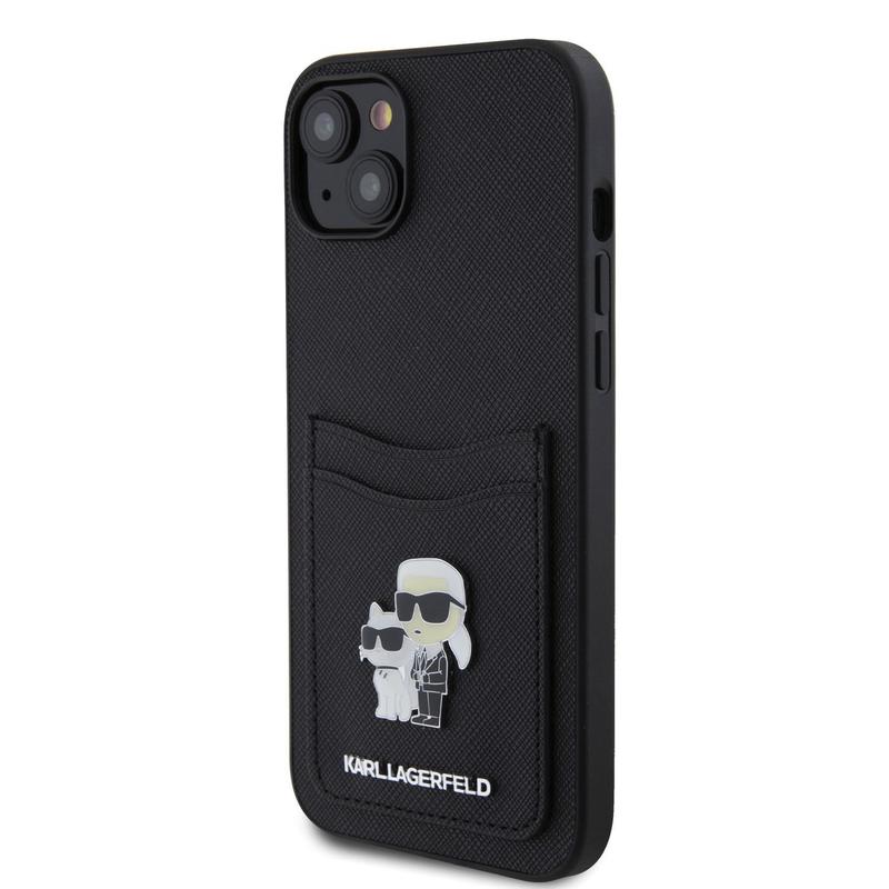 Karl Lagerfeld Saffiano Card Slot Metal Karl & Choupette Case for iPhone 15