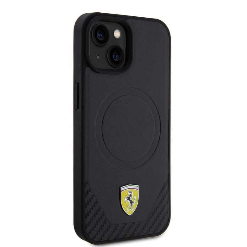 Ferrari Carbon Metal Logo Mag Case for iPhone 15 Plus