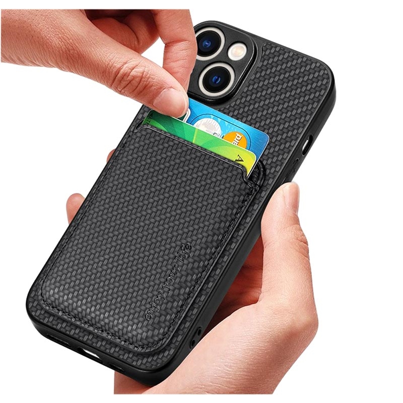 • Maska sa Držačem Kartica za iPhone 15 Plus - Ugljenično Vlakno