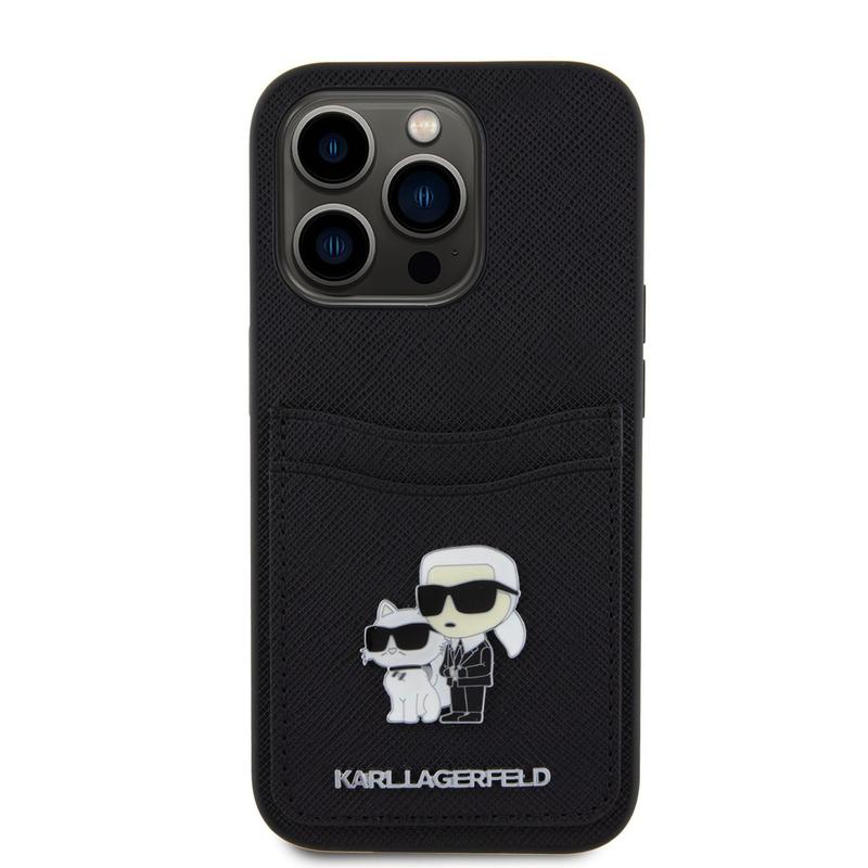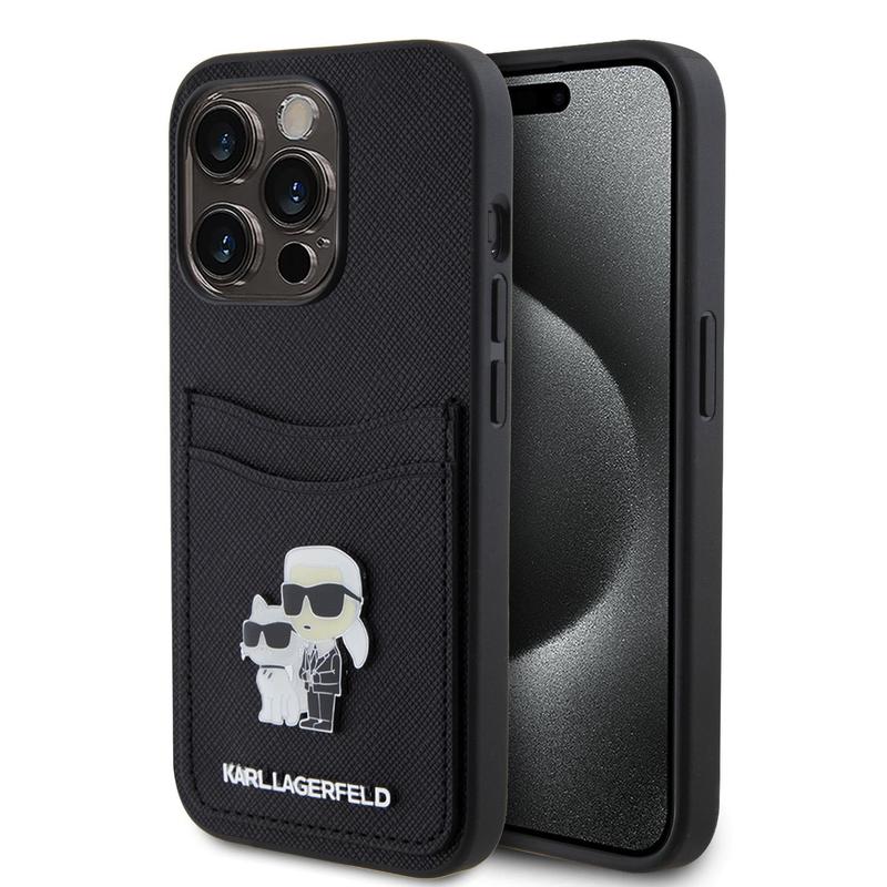 Karl Lagerfeld Saffiano Card Slot Metal Karl & Choupette Case for iPhone 15 Pro