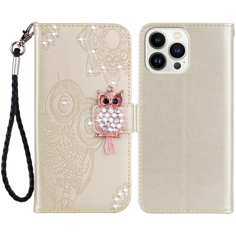 Owl Rhinestone Wallet Case for iPhone 15 Pro