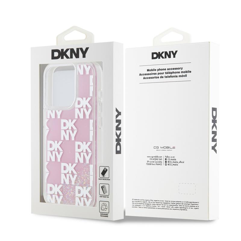 DKNY Liquid Glitter Checkered Pattern Case for iPhone 15 Pro