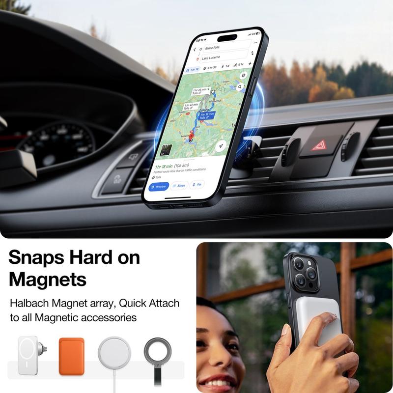 - MagSafe-grade magnetic core – integrated ring delivers a rock-solid hold on chargers, wallets and car mounts, even on bumpy roads.
