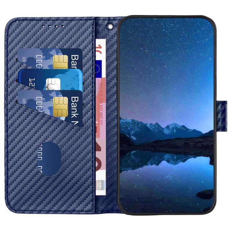 Premium Wallet Case with Strap for iPhone 15 Pro - Carbon Fiber Texture