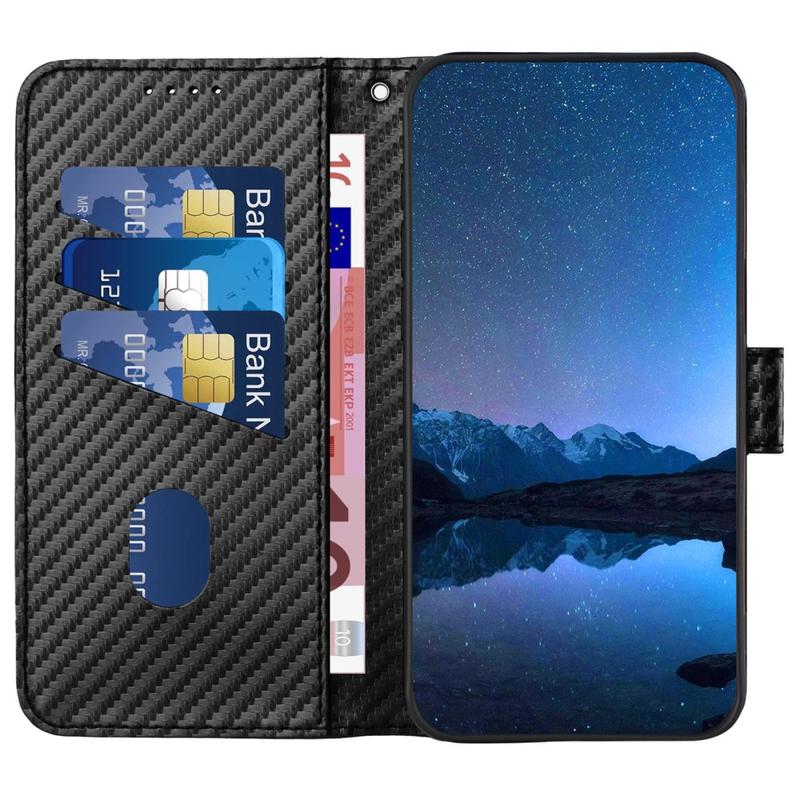 Premium Wallet Case with Strap for iPhone 15 Pro - Carbon Fiber Texture