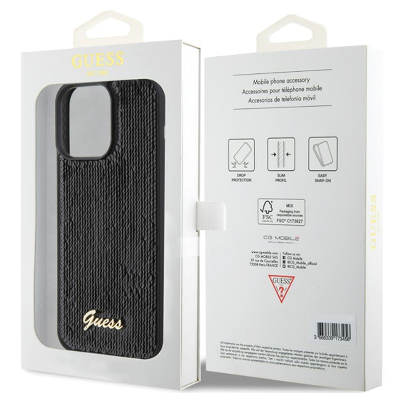 iPhone 15 Pro Guess Sequin Script Logo Maska - Crna