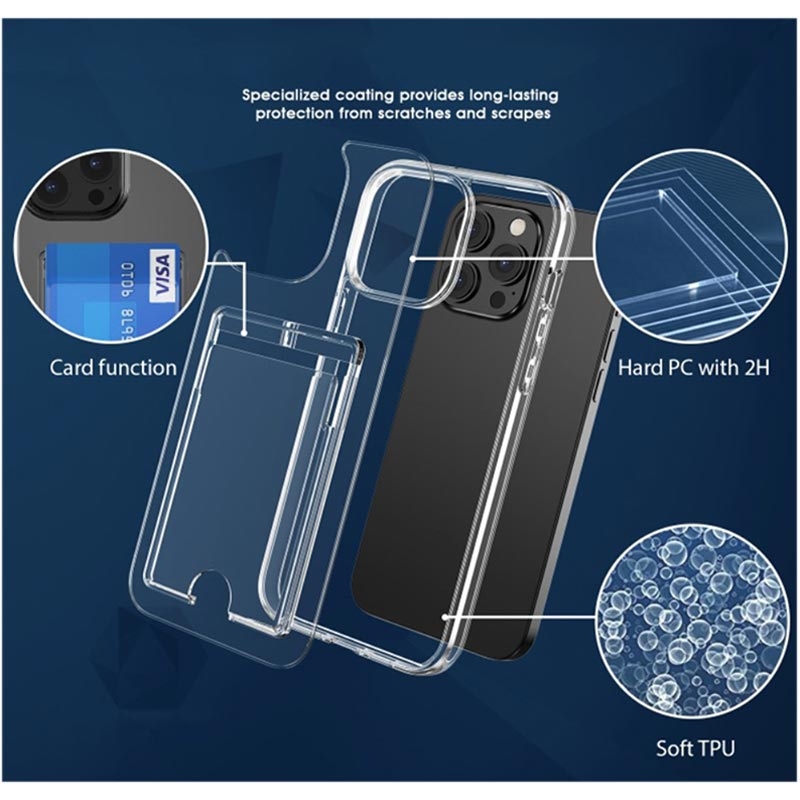- Jedinstvena providna maska sa držačem kartica za iPhone 15 Pro Max