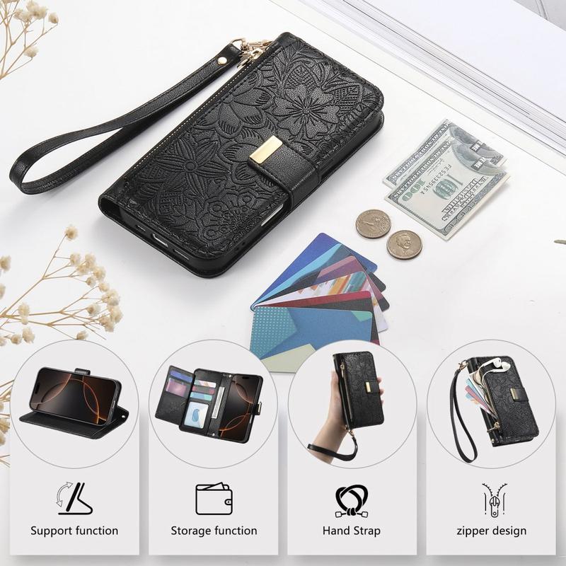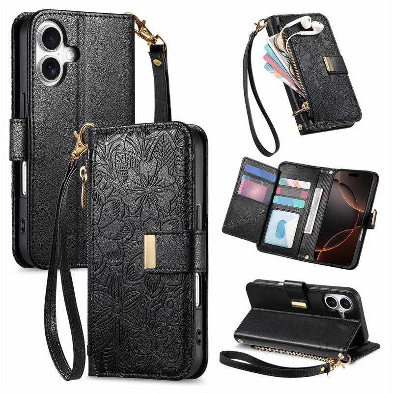 Unlike ordinary iPhone 16 cases, this all-in-one wallet cover combines protection, organization, and elegance. The floral imprinting gives it a stylish edge, while the zipper pocket and wrist strap provide unmatched convenience for daily life and travel.