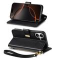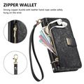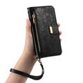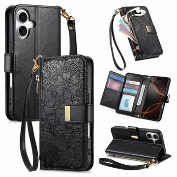 Floral & Leaf Pattern Wallet Case with Zipper Pocket & Wrist Strap for iPhone 16