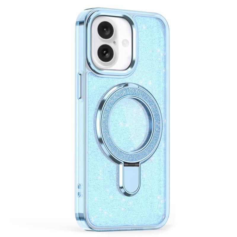 Glitter Case with Kickstand for iPhone 16 - MagSafe Compatible TPU + PC Hybrid Kickstand Cover