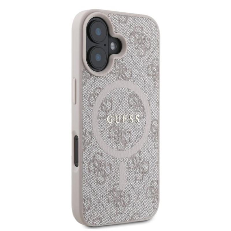 Upgrade your iPhone 16 with the luxurious Guess PU Leather 4G Colored Ring MagSafe Back Cover. This elegant case features a stylish print and the iconic Guess logo on the back, giving your phone a sophisticated and upscale look. With full accessibility to all buttons and connectors, you can easily use your iPhone 16 without having to remove it from the case. Protect your iPhone 16 from scratches and impacts while enjoying a comfortable and stylish design with this functional case from Guess.