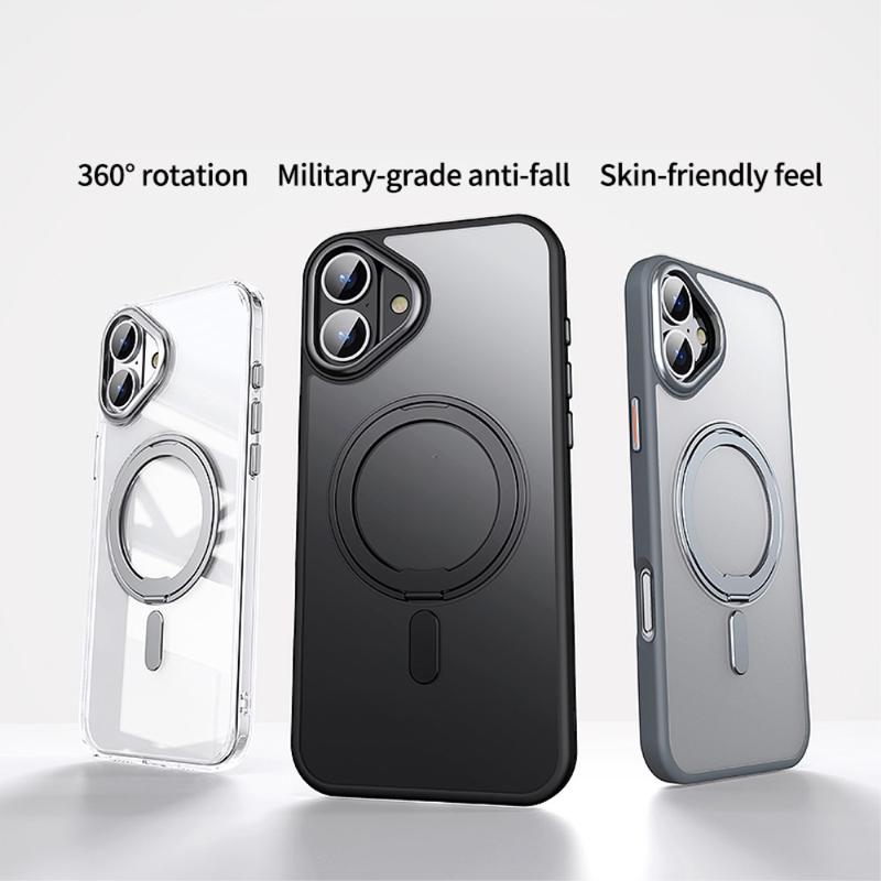Protect your iPhone 16 Plus in style with the Magnetic Case, featuring a durable combination of TPU and acrylic with a built-in metal kickstand. This sleek matte grey cover offers superior protection and functionality, ensuring your device stays safe and convenient to use.