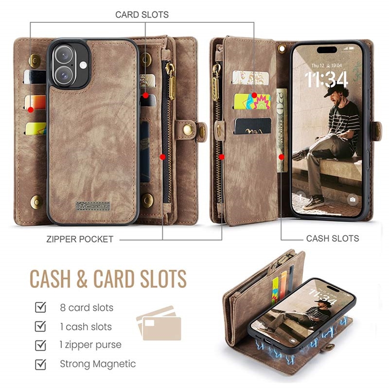 Caseme 008 2-u-1 Multifunkcionalna Futrola-Novčanik za iPhone 16 Plus