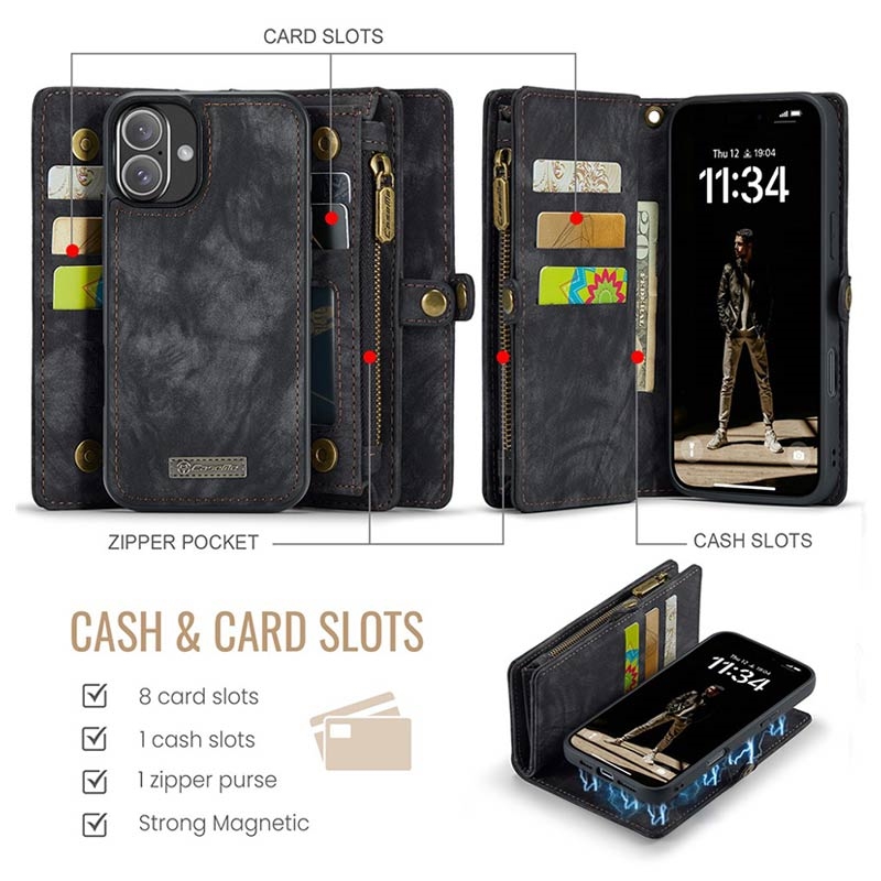 Caseme 008 2-u-1 Multifunkcionalna Futrola-Novčanik za iPhone 16 Plus