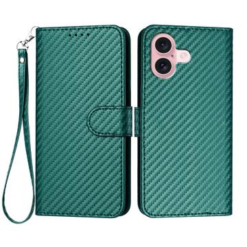 Premium Wallet Case with Strap for iPhone 16 - Carbon Fiber Texture