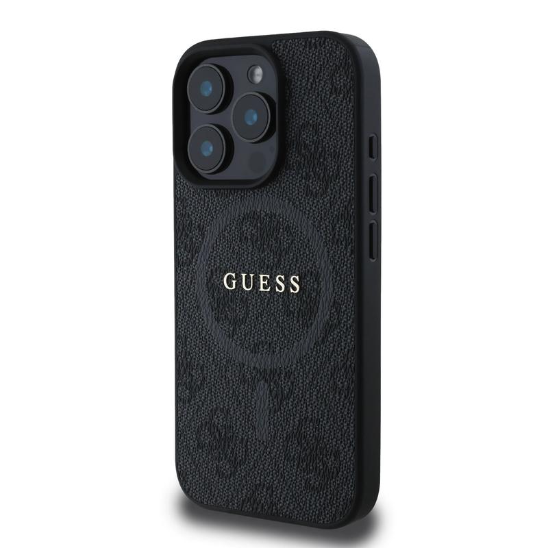 Upgrade your iPhone 16 Pro Max with the luxurious Guess PU Leather 4G Colored Ring MagSafe Back Cover. This elegant case features a stylish print and the iconic Guess logo on the back, giving your phone a sophisticated and upscale look. With full accessibility to all buttons and connectors, you can easily use your iPhone 16 Pro Max without having to remove it from the case. Protect your iPhone 16 Pro Max from scratches and impacts while enjoying a comfortable and stylish design with this functional case from Guess.