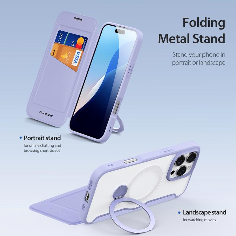 Elevate your iPhone 16 Pro with the Dux Ducis Skin X Pro Series Magnetic Case, designed for both style and functionality. This luxurious polyurethane case features a magnetic closure, rotary kickstand, and a convenient card slot, offering all-in-one protection and convenience. The case is crafted from premium materials, ensuring durability while maintaining a sleek and slim profile. Its versatile design makes it perfect for hands-free viewing, secure storage, and stylish protection.