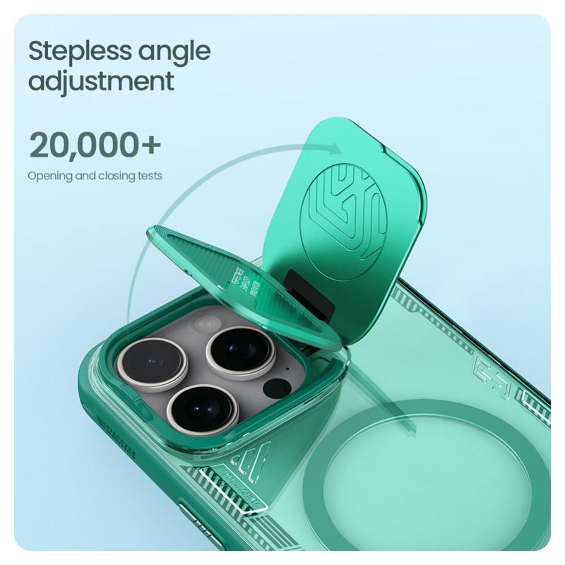 Protect your iPhone 16 Pro with the Nillkin IceBlade Prop Magnetic Case. This sleek case combines durability with convenience, offering full MagSafe compatibility. Made from PC and TPU, it ensures robust protection while its slide lens lid safeguards your camera from scratches and dust.
