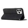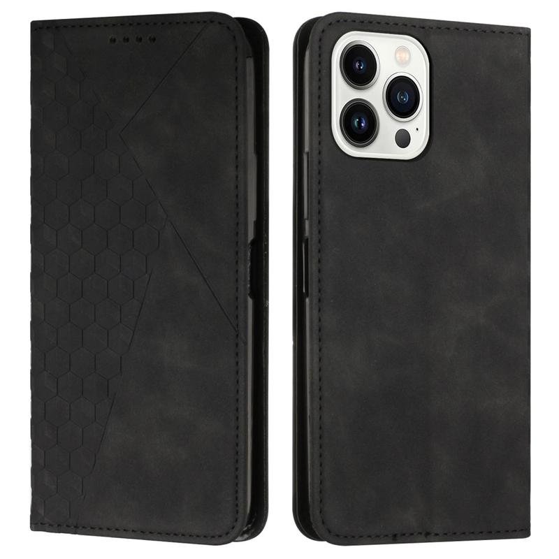 iPhone 16 Pro Rhombus Pattern Wallet Case with Magnetic Closure - Black