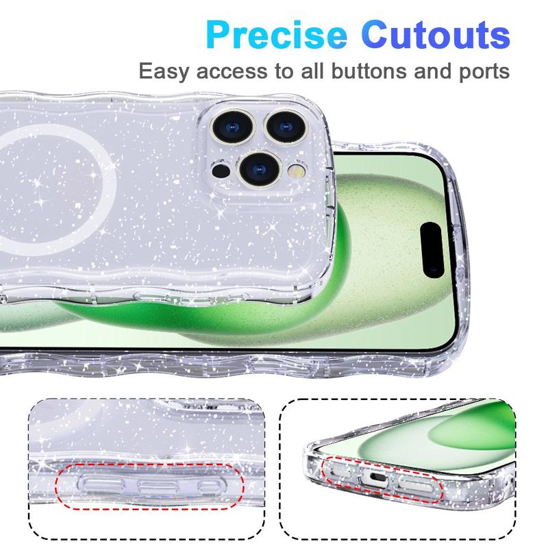 Wave-Edge Laser Glitter MagSafe TPU Case for iPhone 16 Pro