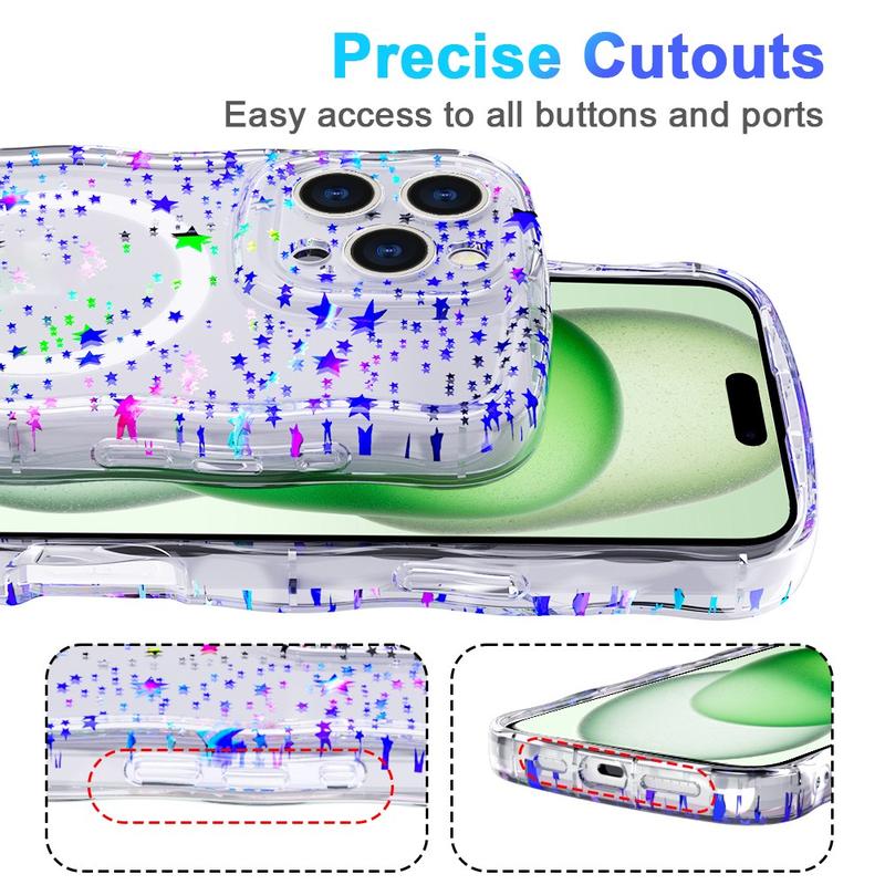 Wave-Edge Laser Glitter MagSafe TPU Case for iPhone 16 Pro