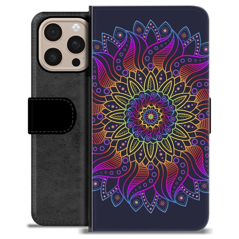 iPhone 16 Pro Max Premijum Futrola-Novčanik - Šarena Mandala