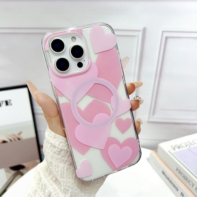 Add personality and protection to your iPhone 16 Pro Max with this heart-pattern magnetic case. Designed with bold and playful oversized hearts, it blends fashion with functionality. The slim hybrid design of TPU and PC ensures dependable protection while maintaining MagSafe compatibility for wireless charging and accessories.