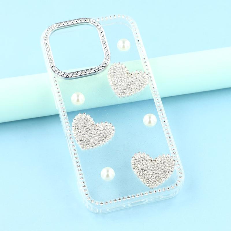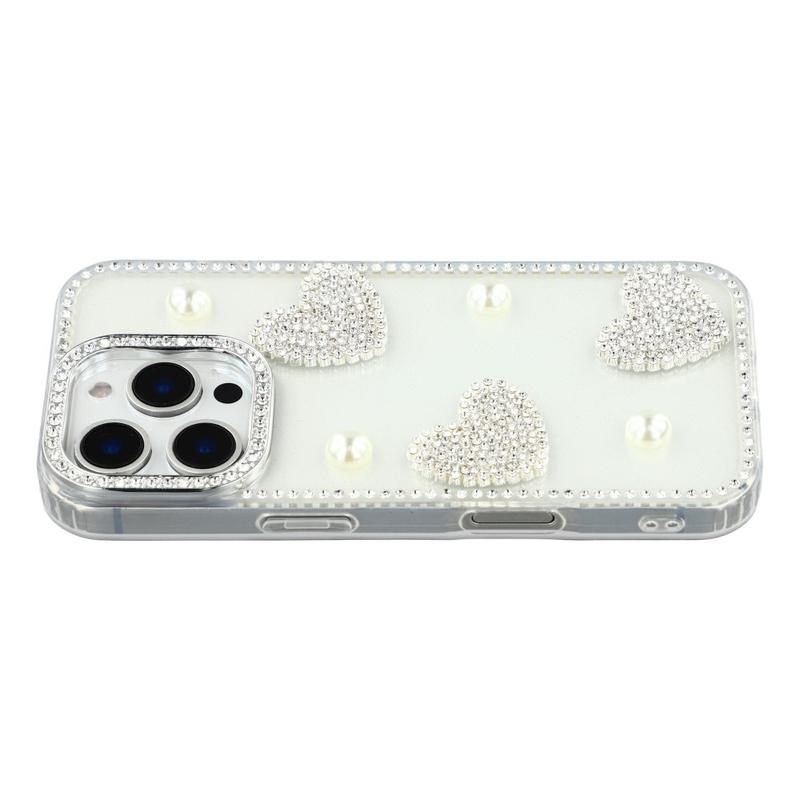 This iPhone 16 Pro case combines reliable everyday protection with glamorous style. Featuring shimmering rhinestones around the edges and sparkling pearl heart decorations on the back, it turns your iPhone 16 Pro into a fashionable accessory while keeping it safe from scratches and bumps.