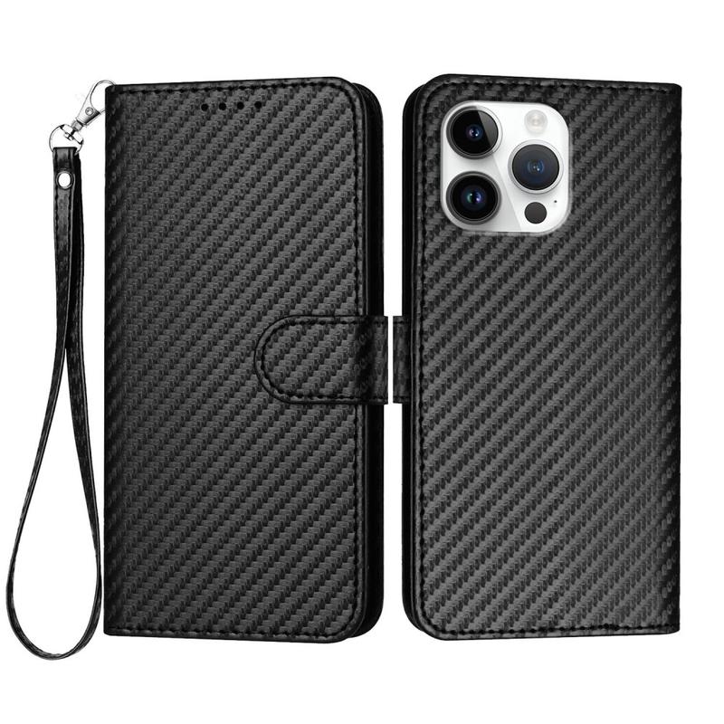 Premium Wallet Case with Strap for iPhone 16 Pro Max - Carbon Fiber Texture
