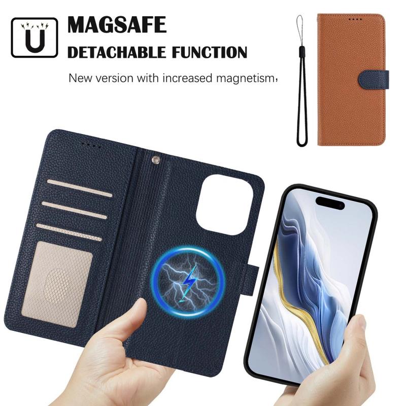 • Detachable Wallet Case with MagSafe, RFID Protection and Hand Strap for iPhone 16 Pro